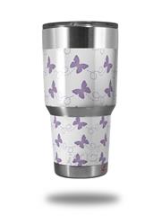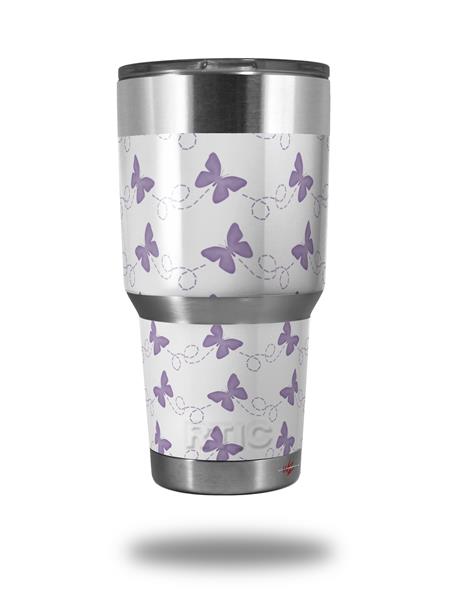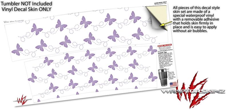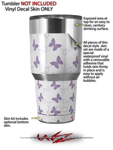 WraptorSkinz Skin Wrap compatible with RTIC 30oz ORIGINAL 2017 AND OLDER Tumblers Pastel Butterflies Purple on White (TUMBLER NOT INCLUDED)