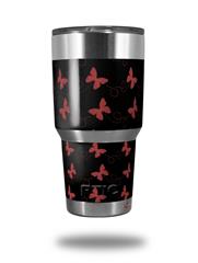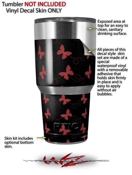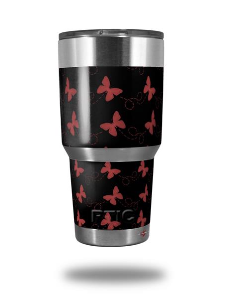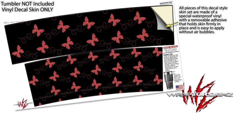WraptorSkinz Skin Wrap compatible with RTIC 30oz ORIGINAL 2017 AND OLDER Tumblers Pastel Butterflies Red on Black (TUMBLER NOT INCLUDED)