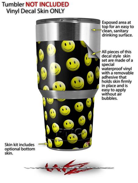 WraptorSkinz Skin Wrap compatible with RTIC 30oz ORIGINAL 2017 AND OLDER Tumblers Smileys on Black (TUMBLER NOT INCLUDED)