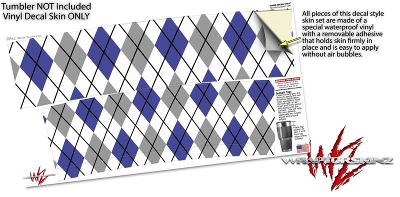 WraptorSkinz Skin Wrap compatible with RTIC 30oz ORIGINAL 2017 AND OLDER Tumblers Argyle Blue and Gray (TUMBLER NOT INCLUDED)