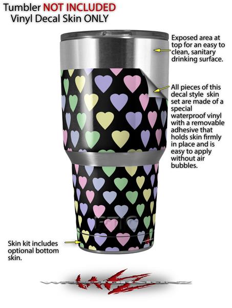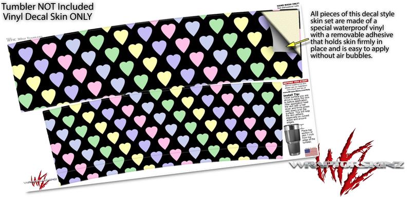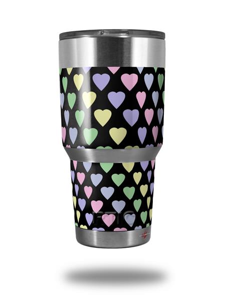 WraptorSkinz Skin Wrap compatible with RTIC 30oz ORIGINAL 2017 AND OLDER Tumblers Pastel Hearts on Black (TUMBLER NOT INCLUDED)