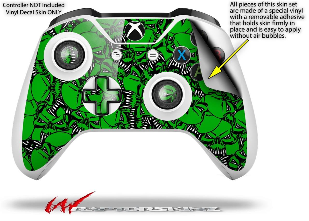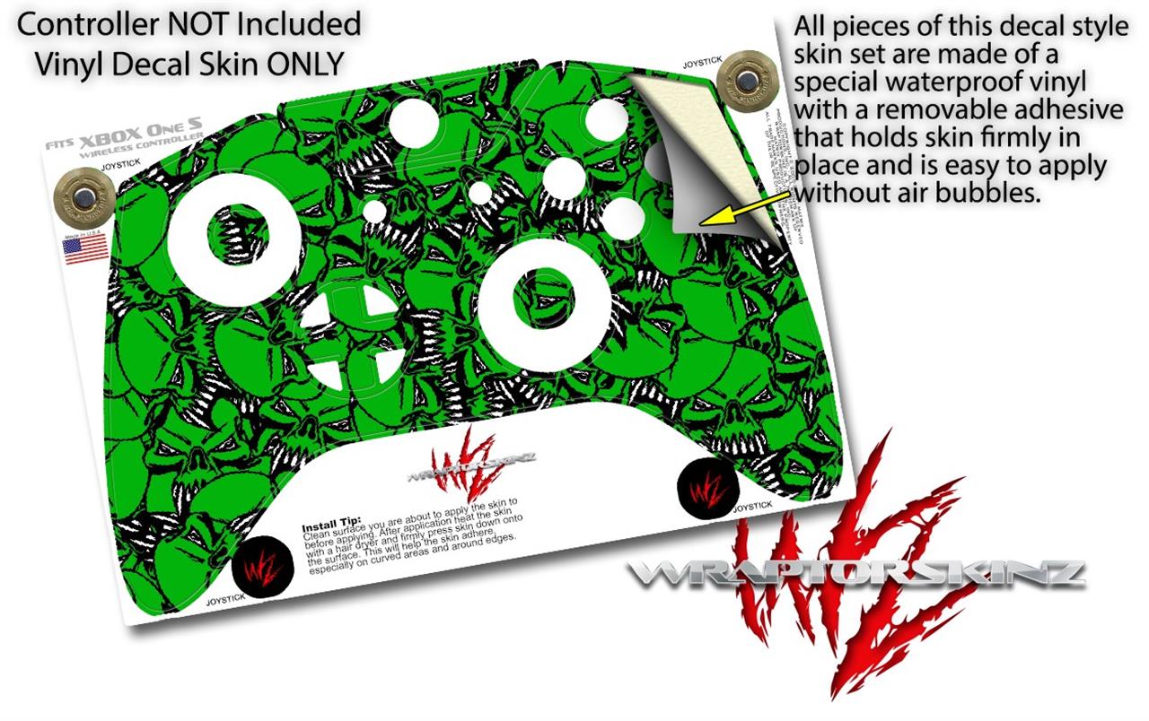 WraptorSkinz Decal Skin Wrap Set works with 2016 and newer XBOX One S / X Controller Scattered Skulls Green (CONTROLLER NOT INCLUDED)