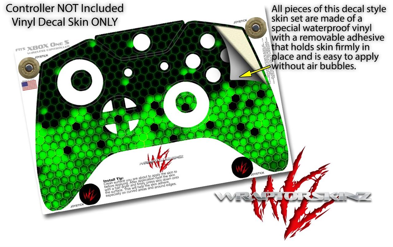 WraptorSkinz Decal Skin Wrap Set works with 2016 and newer XBOX One S / X Controller HEX Green (CONTROLLER NOT INCLUDED)