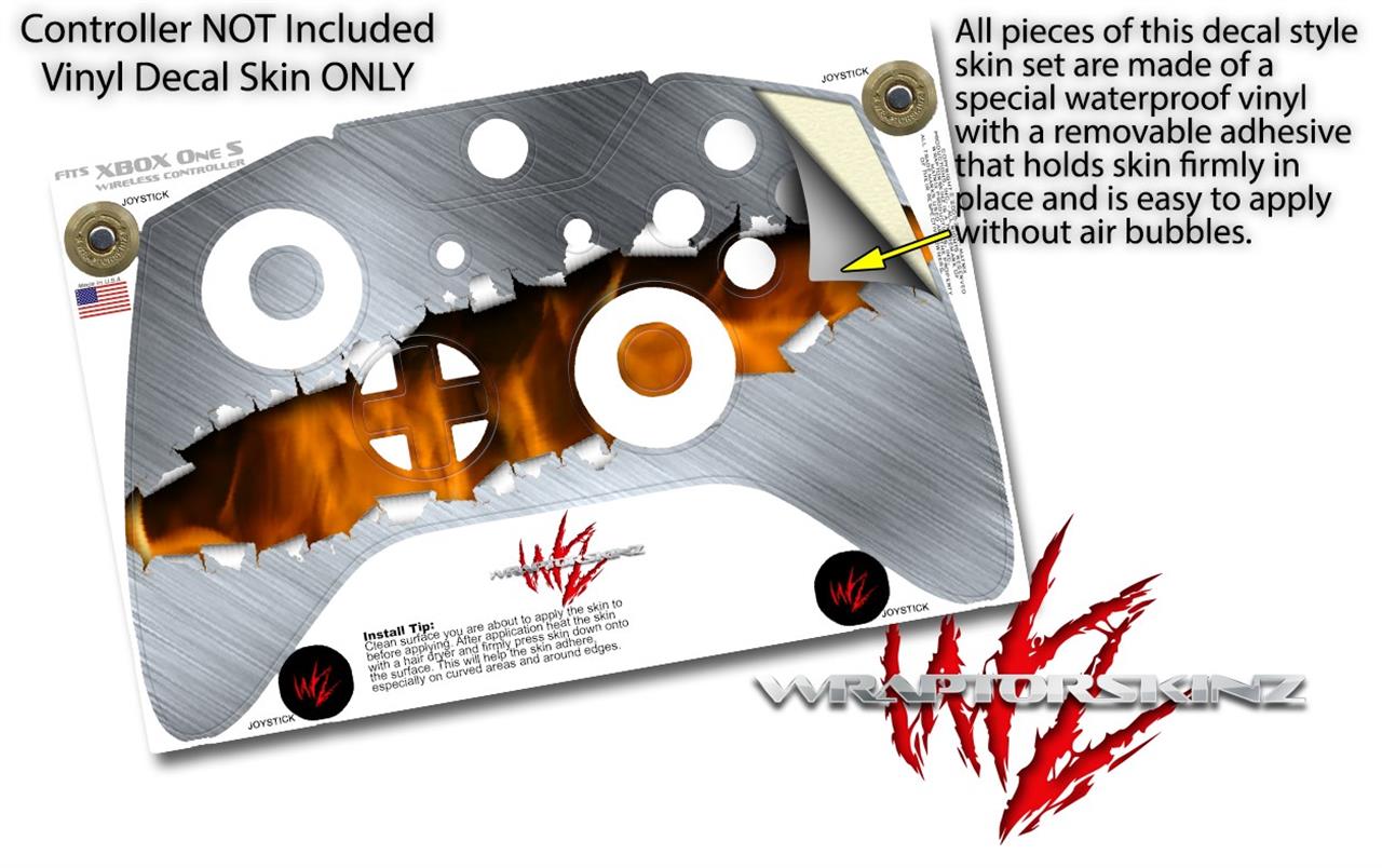 WraptorSkinz Decal Skin Wrap Set works with 2016 and newer XBOX One S / X Controller Ripped Metal Fire (CONTROLLER NOT INCLUDED)