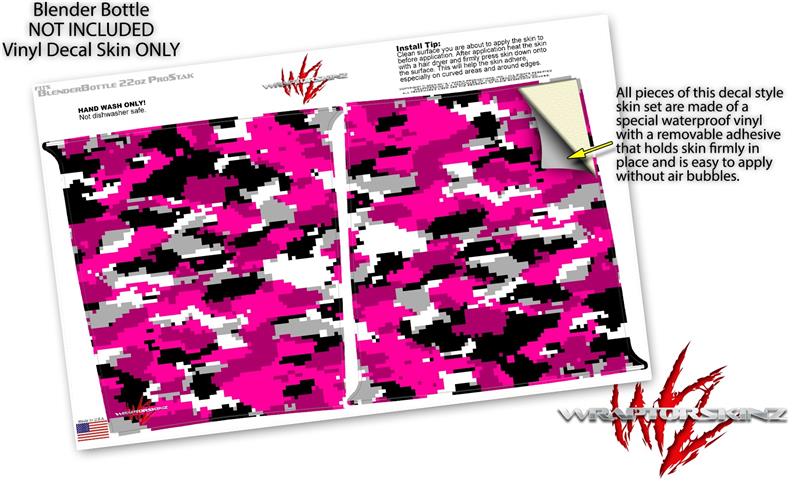Skin Decal Wrap works with Blender Bottle ProStak 22oz WraptorCamo Digital Camo Hot Pink (BOTTLE NOT INCLUDED)