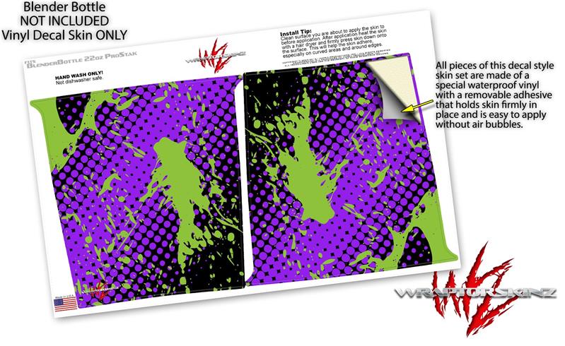 Skin Decal Wrap works with Blender Bottle ProStak 22oz Halftone Splatter Green Purple (BOTTLE NOT INCLUDED)