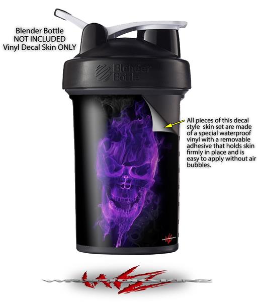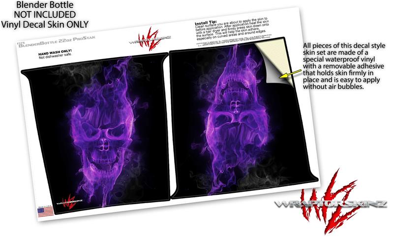 Skin Decal Wrap works with Blender Bottle ProStak 22oz Flaming Fire Skull Purple (BOTTLE NOT INCLUDED)