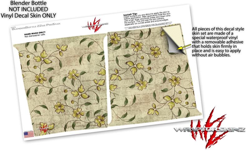 Skin Decal Wrap works with Blender Bottle ProStak 22oz Flowers and Berries Yellow (BOTTLE NOT INCLUDED)