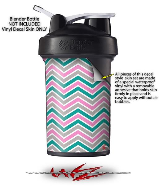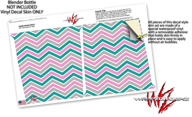 Skin Decal Wrap works with Blender Bottle ProStak 22oz Zig Zag Teal Pink and Gray (BOTTLE NOT INCLUDED)