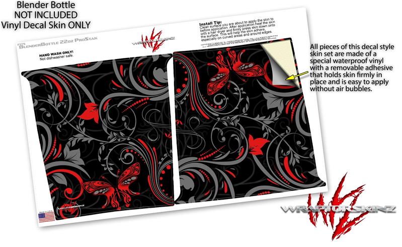 Skin Decal Wrap works with Blender Bottle ProStak 22oz Twisted Garden Gray and Red (BOTTLE NOT INCLUDED)
