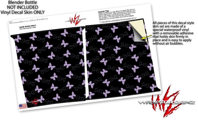 Skin Decal Wrap works with Blender Bottle ProStak 22oz Pastel Butterflies Purple on Black (BOTTLE NOT INCLUDED)