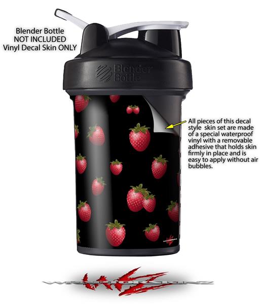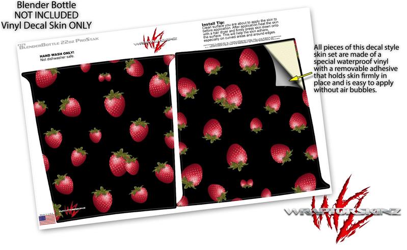 Skin Decal Wrap works with Blender Bottle ProStak 22oz Strawberries on Black (BOTTLE NOT INCLUDED)
