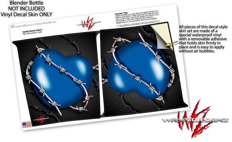 Skin Decal Wrap works with Blender Bottle ProStak 22oz Barbwire Heart Blue (BOTTLE NOT INCLUDED)
