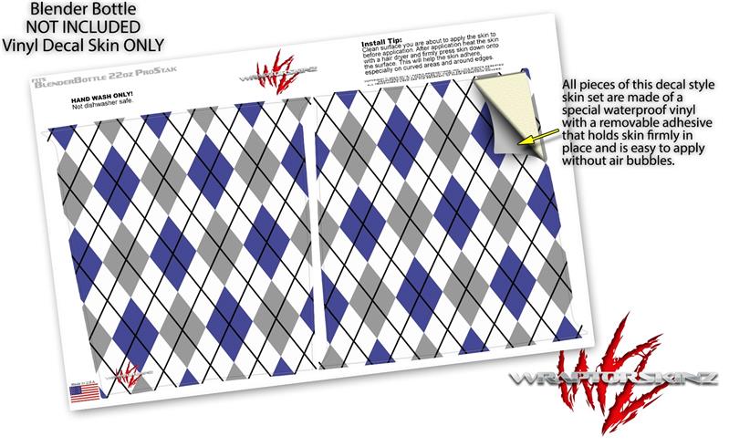 Skin Decal Wrap works with Blender Bottle ProStak 22oz Argyle Blue and Gray (BOTTLE NOT INCLUDED)