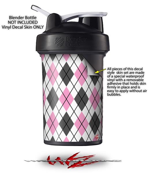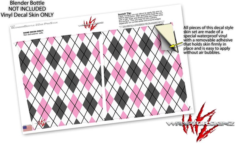 Skin Decal Wrap works with Blender Bottle ProStak 22oz Argyle Pink and Gray (BOTTLE NOT INCLUDED)