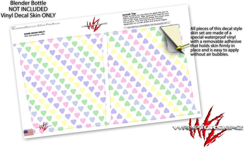 Skin Decal Wrap works with Blender Bottle ProStak 22oz Pastel Hearts on White (BOTTLE NOT INCLUDED)