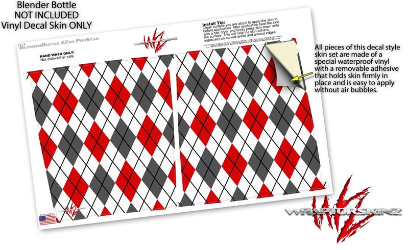 Skin Decal Wrap works with Blender Bottle ProStak 22oz Argyle Red and Gray (BOTTLE NOT INCLUDED)