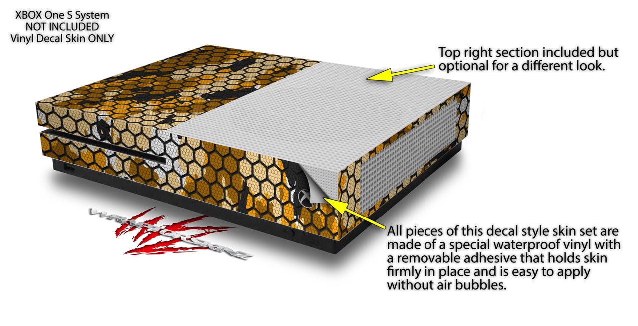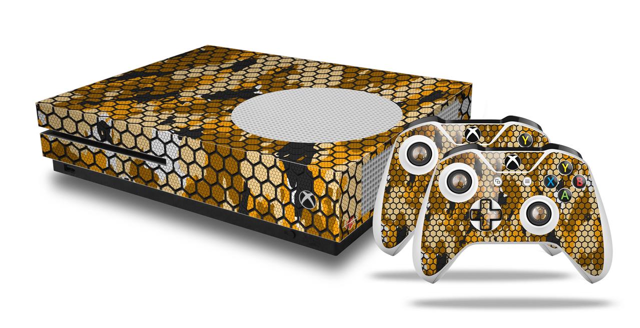 WraptorSkinz Decal Skin Wrap Set works with 2016 and newer XBOX One S Console and 2 Controllers HEX Mesh Camo 01 Orange