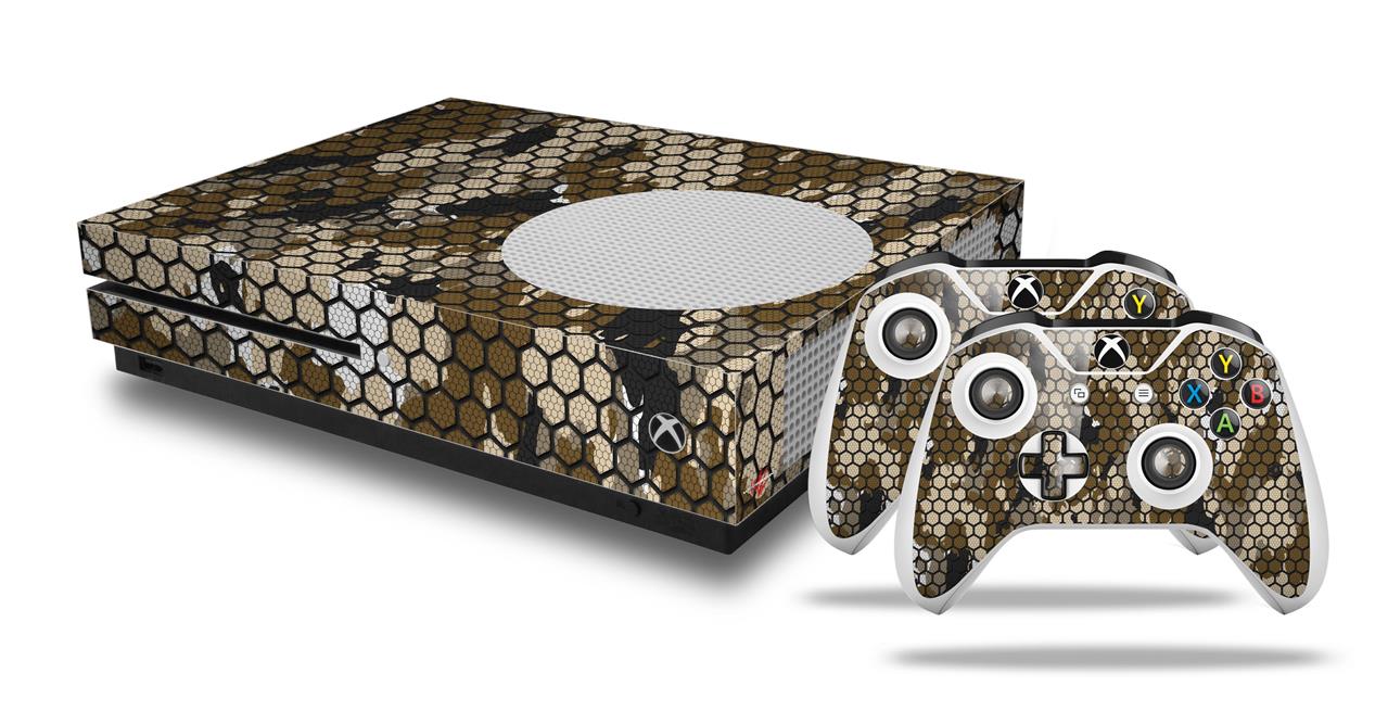 WraptorSkinz Decal Skin Wrap Set works with 2016 and newer XBOX One S Console and 2 Controllers HEX Mesh Camo 01 Brown