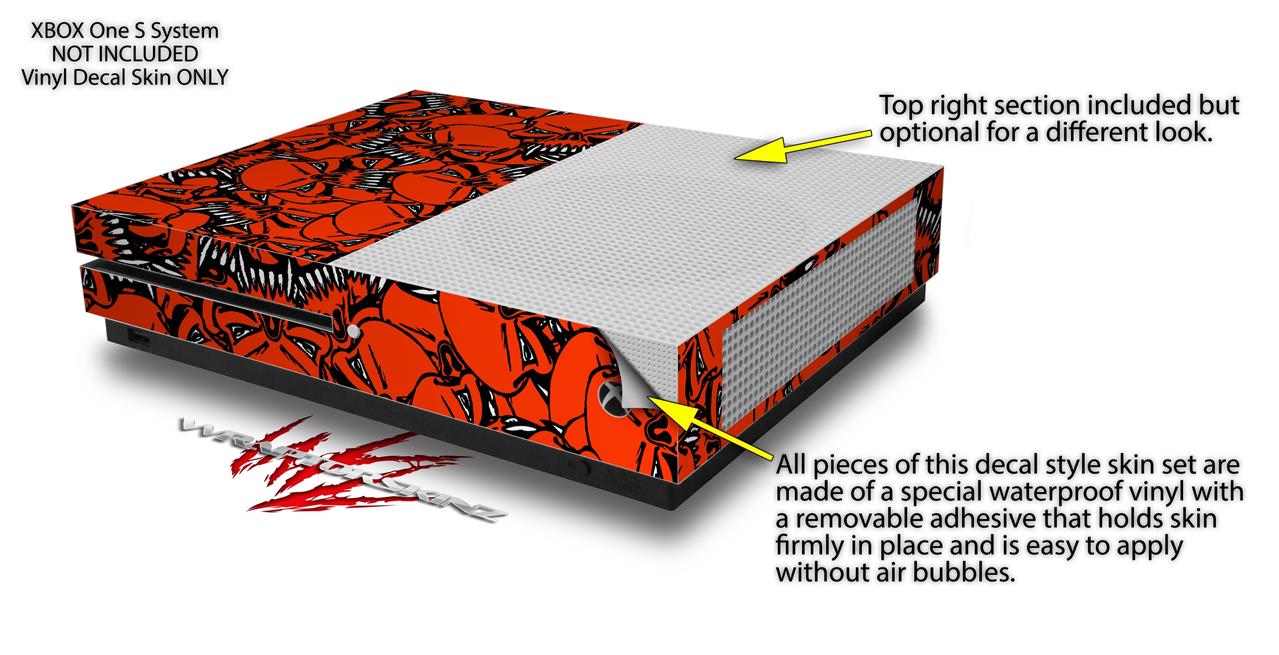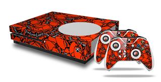 WraptorSkinz Decal Skin Wrap Set works with 2016 and newer XBOX One S Console and 2 Controllers Scattered Skulls Red