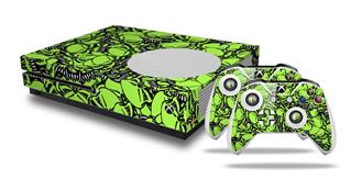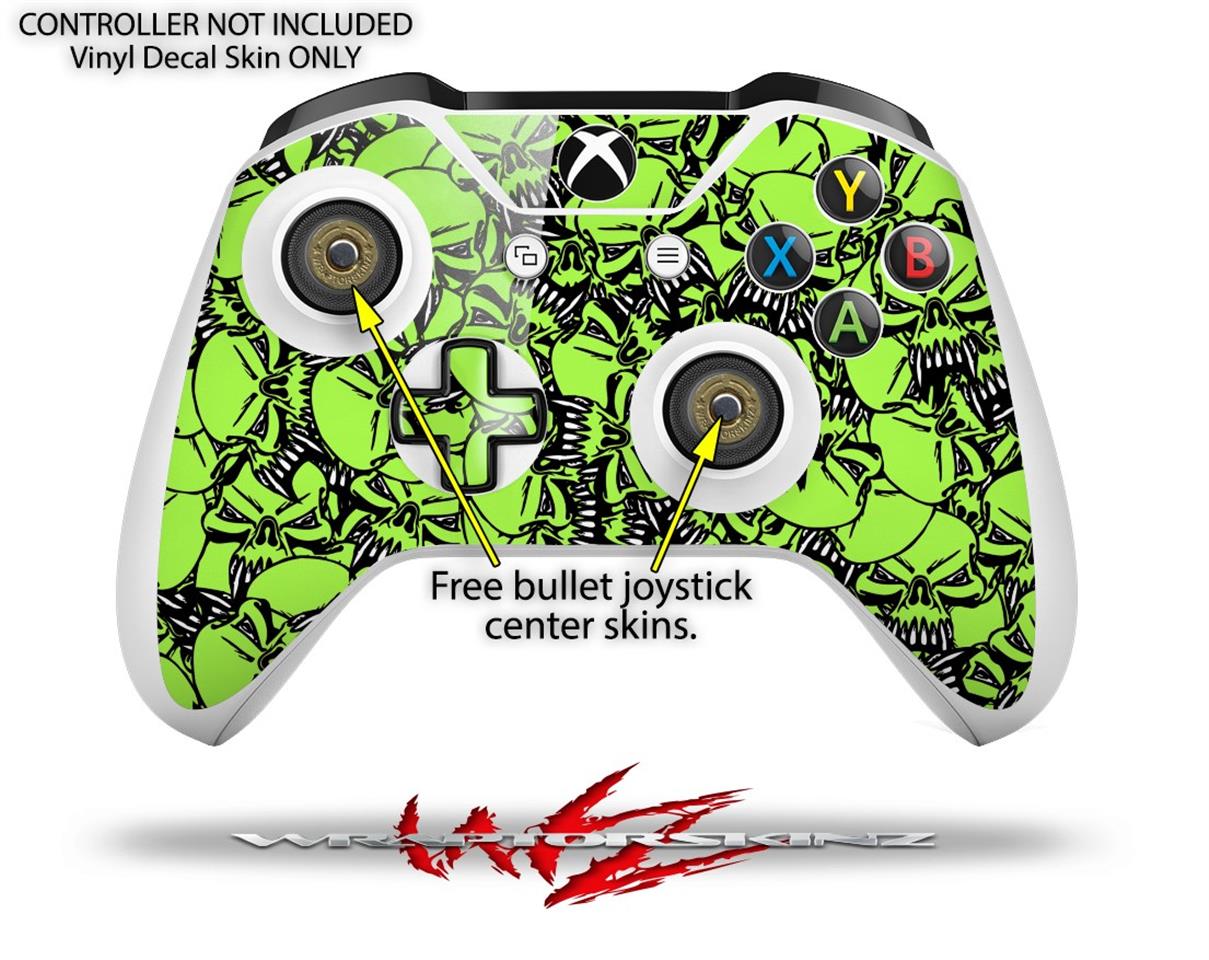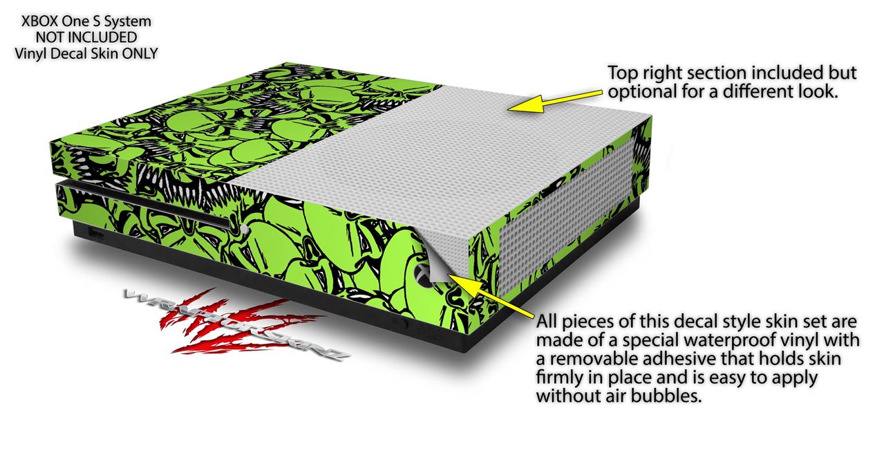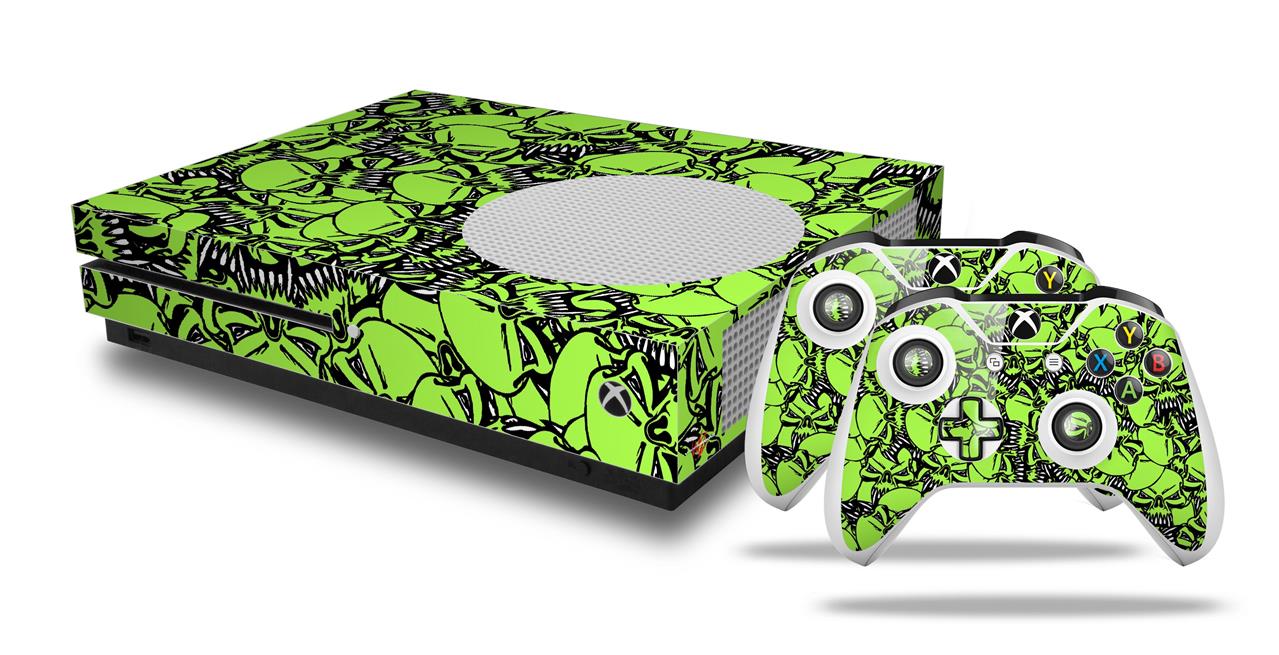 WraptorSkinz Decal Skin Wrap Set works with 2016 and newer XBOX One S Console and 2 Controllers Scattered Skulls Neon Green