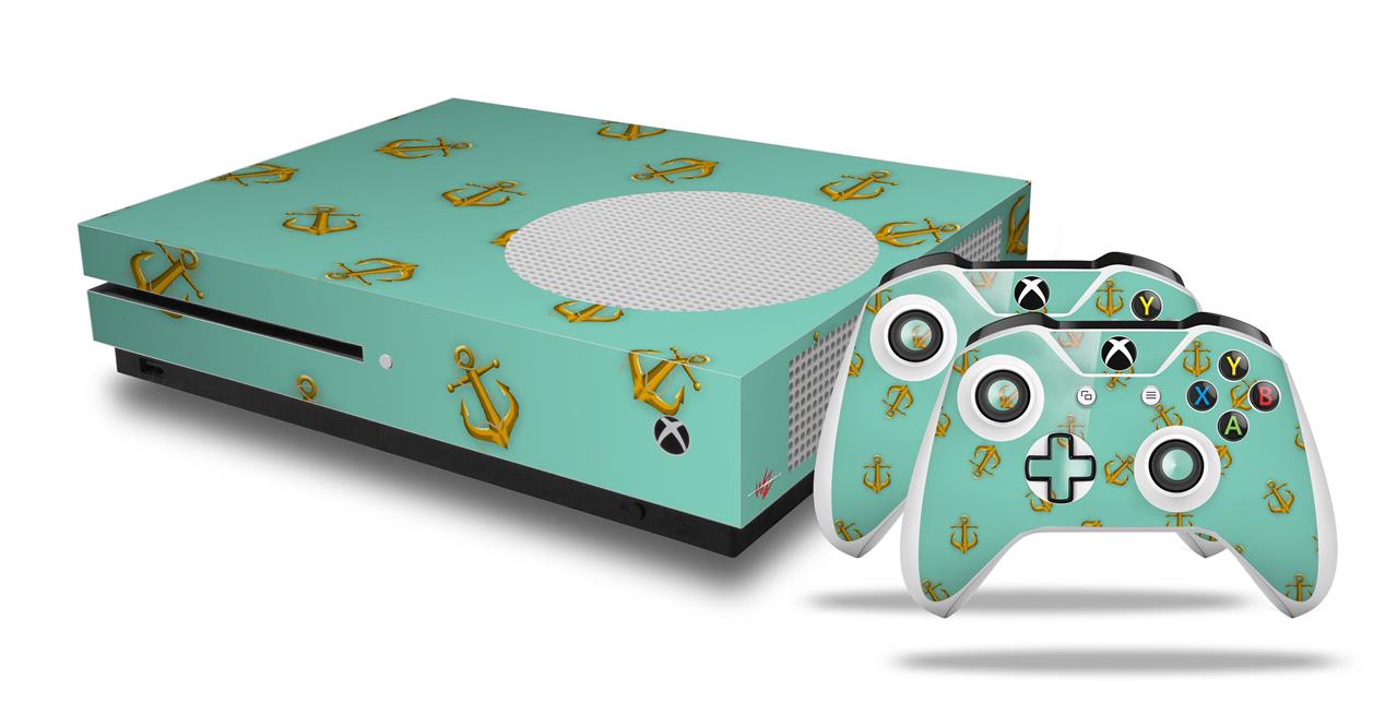 WraptorSkinz Decal Skin Wrap Set works with 2016 and newer XBOX One S Console and 2 Controllers Anchors Away Seafoam Green