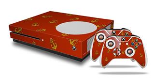 WraptorSkinz Decal Skin Wrap Set works with 2016 and newer XBOX One S Console and 2 Controllers Anchors Away Red Dark