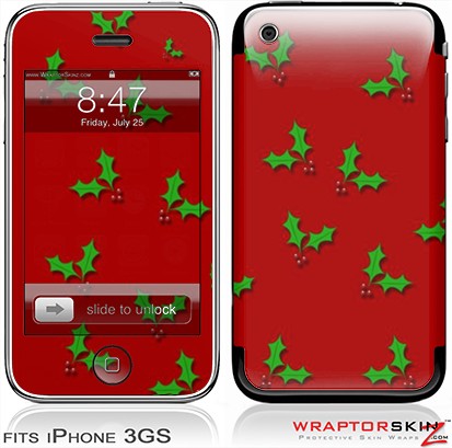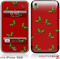 iPhone 3GS Decal Style Skin - Christmas Holly Leaves on Red