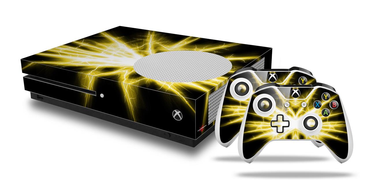 WraptorSkinz Decal Skin Wrap Set works with 2016 and newer XBOX One S Console and 2 Controllers Lightning Yellow