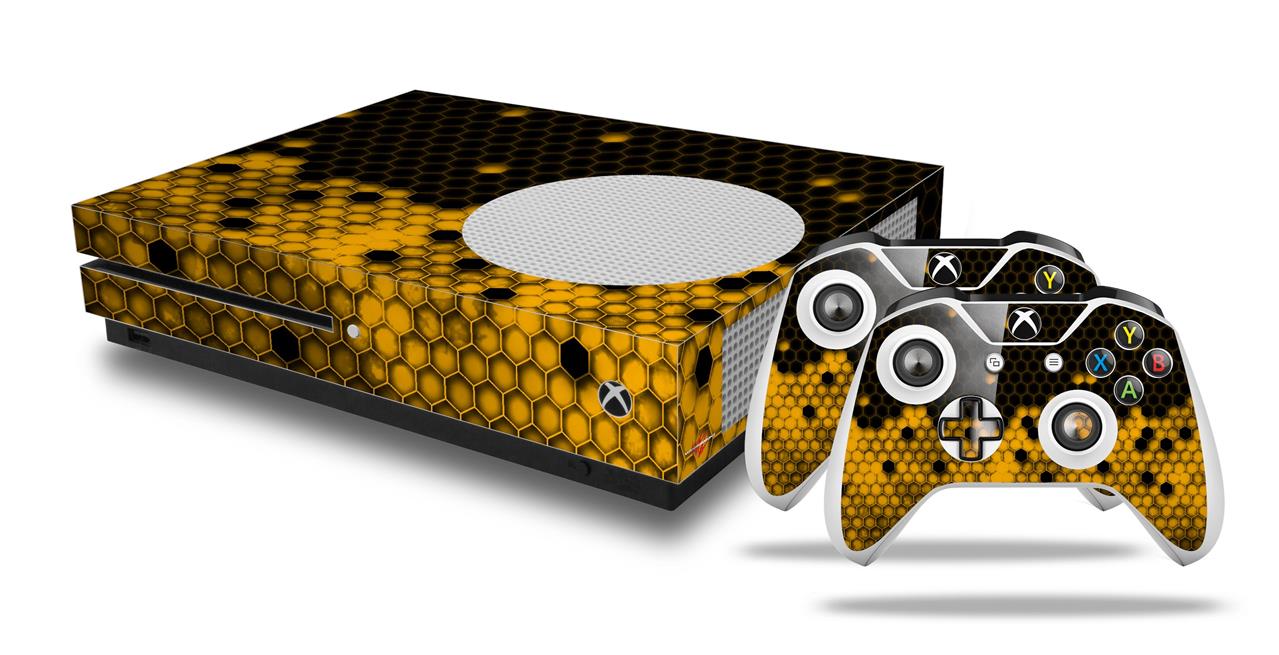 WraptorSkinz Decal Skin Wrap Set works with 2016 and newer XBOX One S Console and 2 Controllers HEX Yellow