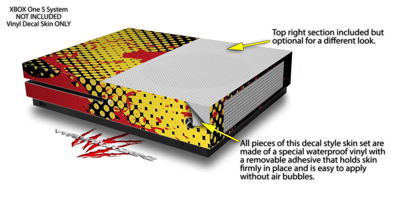 WraptorSkinz Decal Skin Wrap Set works with 2016 and newer XBOX One S Console and 2 Controllers Halftone Splatter Yellow Red