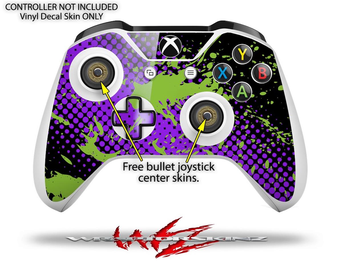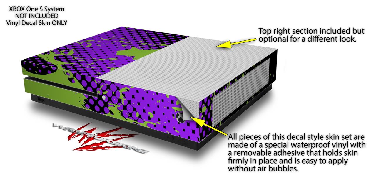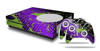 WraptorSkinz Decal Skin Wrap Set works with 2016 and newer XBOX One S Console and 2 Controllers Halftone Splatter Green Purple