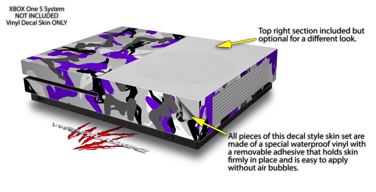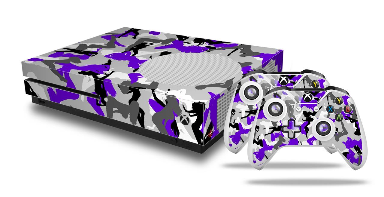 WraptorSkinz Decal Skin Wrap Set works with 2016 and newer XBOX One S Console and 2 Controllers Sexy Girl Silhouette Camo Purple