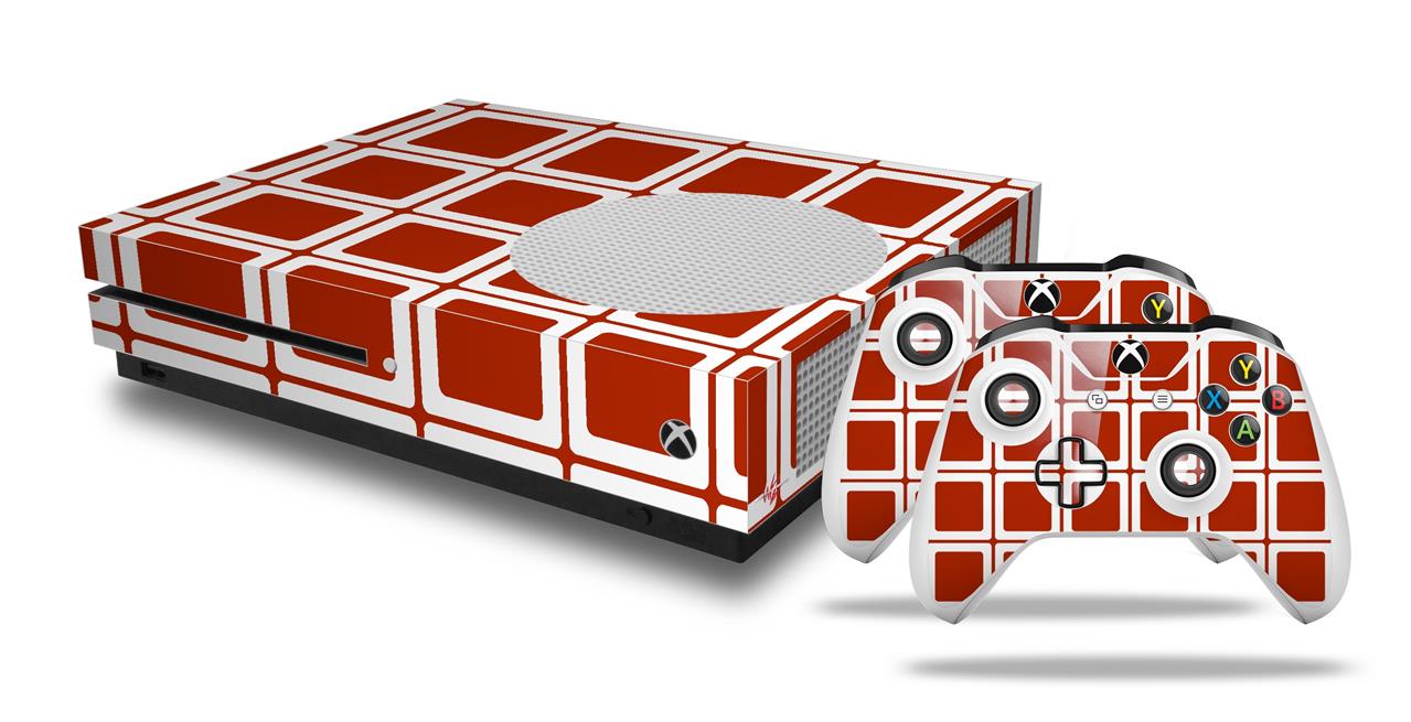 WraptorSkinz Decal Skin Wrap Set works with 2016 and newer XBOX One S Console and 2 Controllers Squared Red Dark