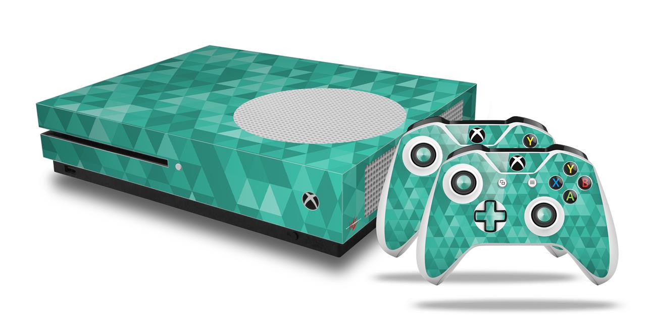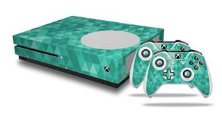 WraptorSkinz Decal Skin Wrap Set works with 2016 and newer XBOX One S Console and 2 Controllers Triangle Mosaic Seafoam Green