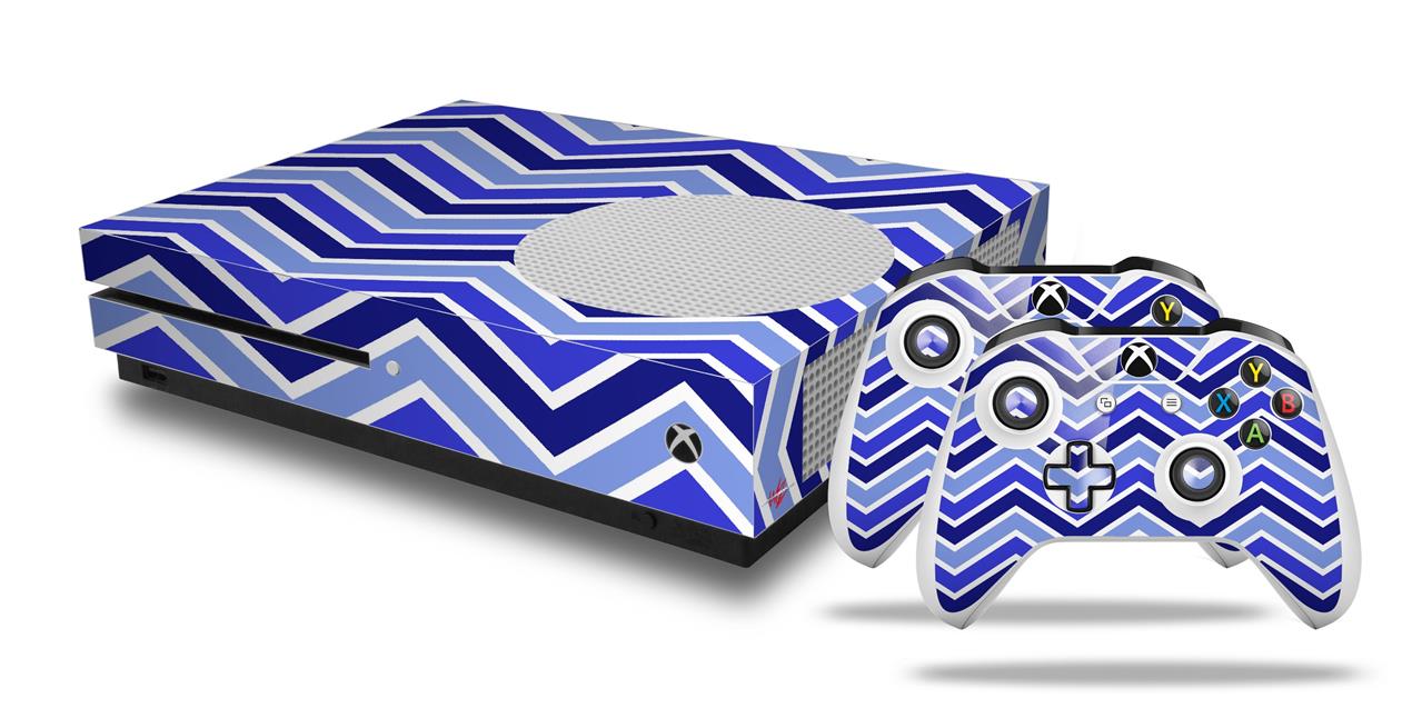 WraptorSkinz Decal Skin Wrap Set works with 2016 and newer XBOX One S Console and 2 Controllers Zig Zag Blues