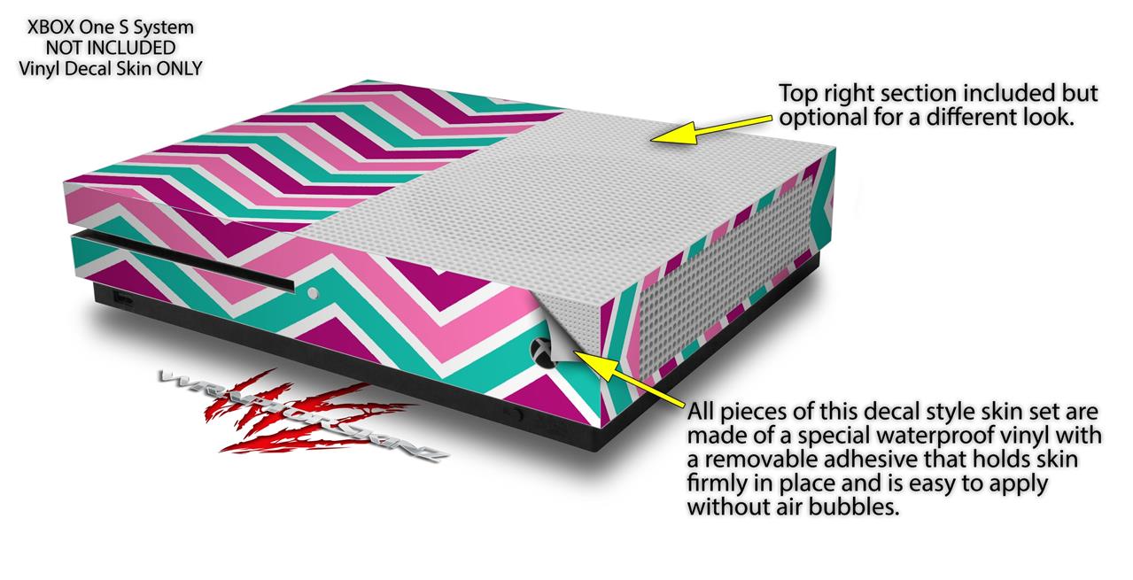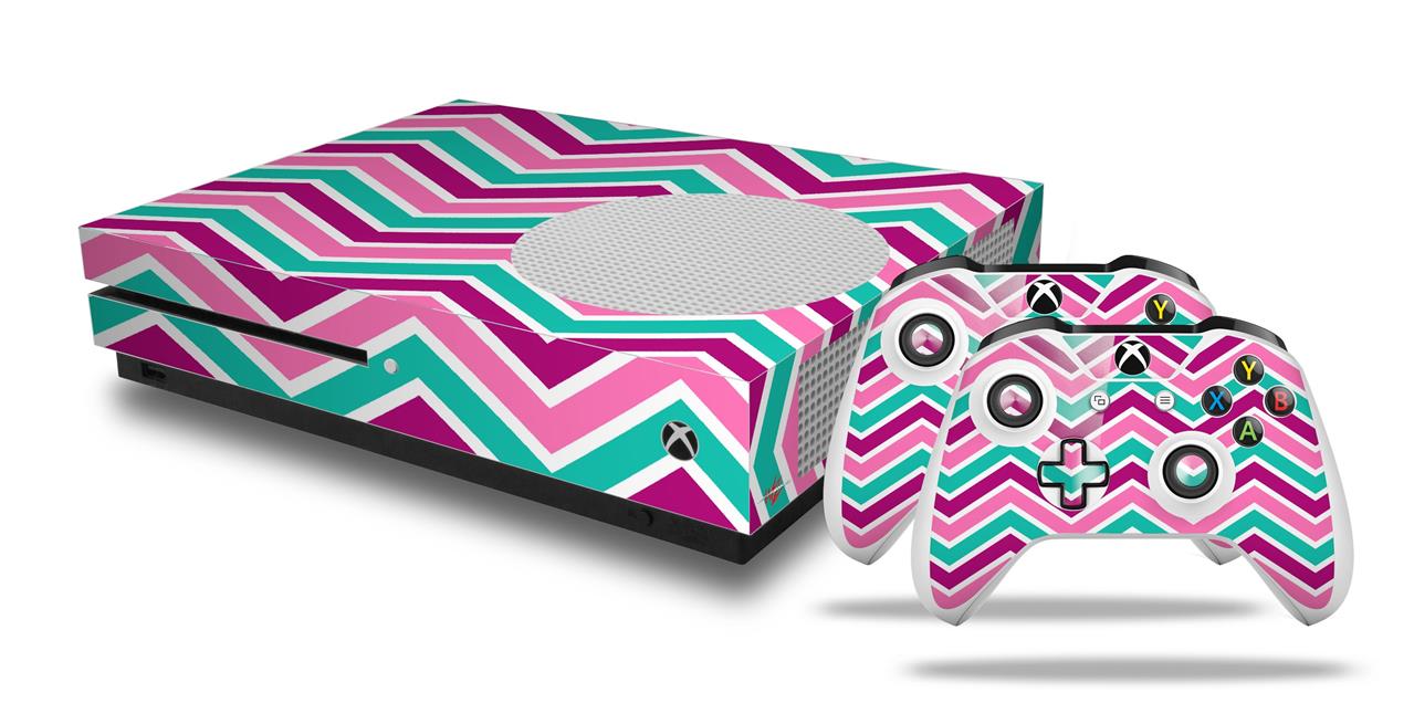 WraptorSkinz Decal Skin Wrap Set works with 2016 and newer XBOX One S Console and 2 Controllers Zig Zag Teal Pink Purple