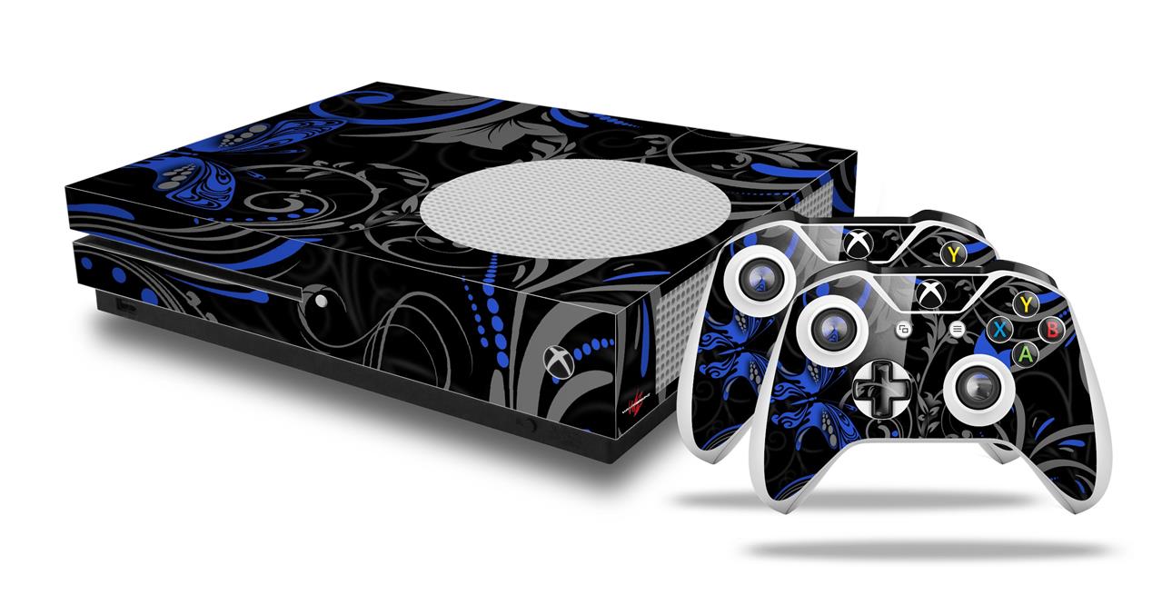 WraptorSkinz Decal Skin Wrap Set works with 2016 and newer XBOX One S Console and 2 Controllers Twisted Garden Gray and Blue