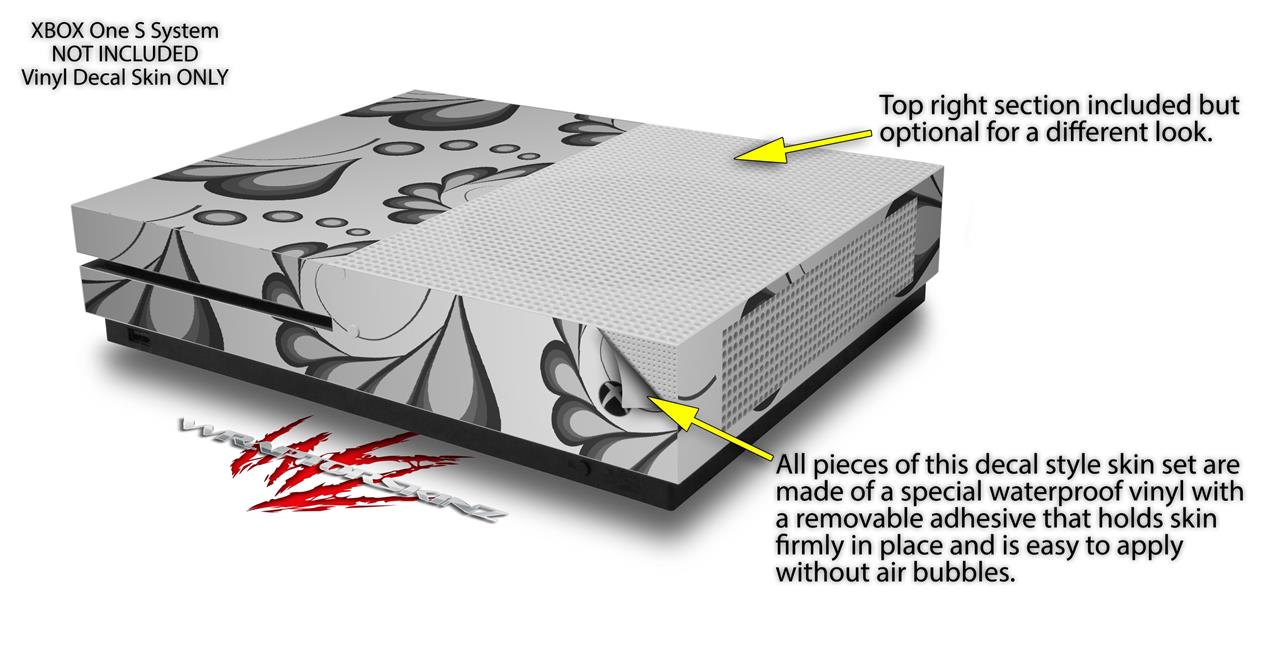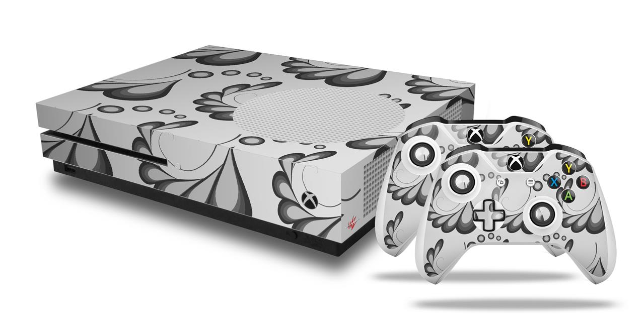 WraptorSkinz Decal Skin Wrap Set works with 2016 and newer XBOX One S Console and 2 Controllers Petals Gray