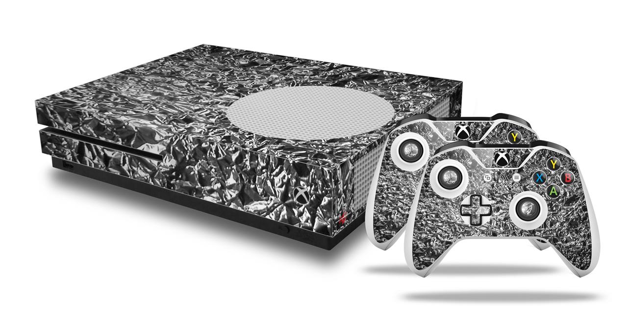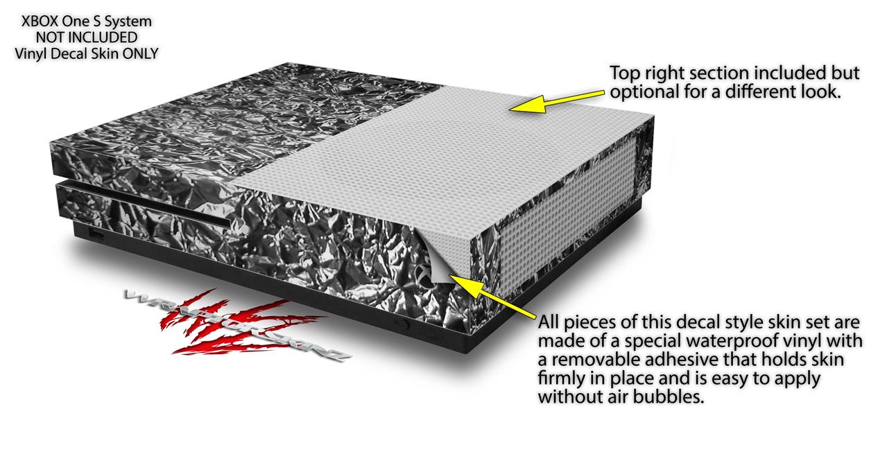 WraptorSkinz Decal Skin Wrap Set works with 2016 and newer XBOX One S Console and 2 Controllers Aluminum Foil