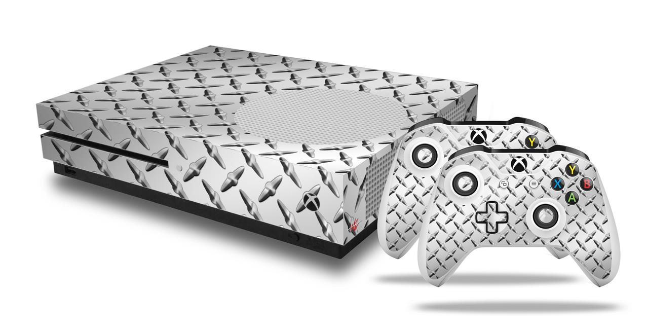 WraptorSkinz Decal Skin Wrap Set works with 2016 and newer XBOX One S Console and 2 Controllers Diamond Plate Metal