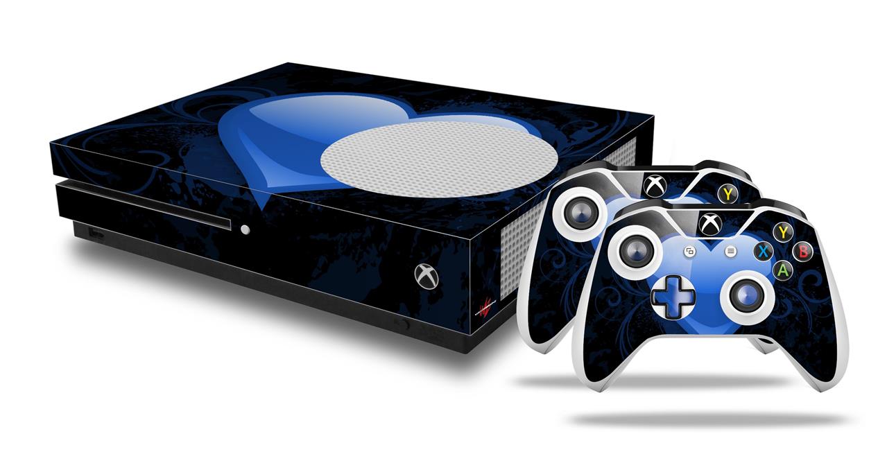 WraptorSkinz Decal Skin Wrap Set works with 2016 and newer XBOX One S Console and 2 Controllers Glass Heart Grunge Blue