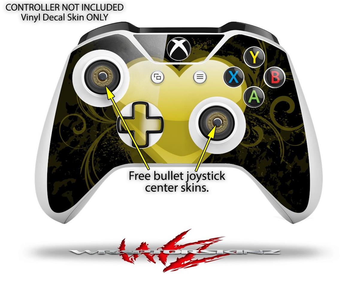WraptorSkinz Decal Skin Wrap Set works with 2016 and newer XBOX One S Console and 2 Controllers Glass Heart Grunge Yellow