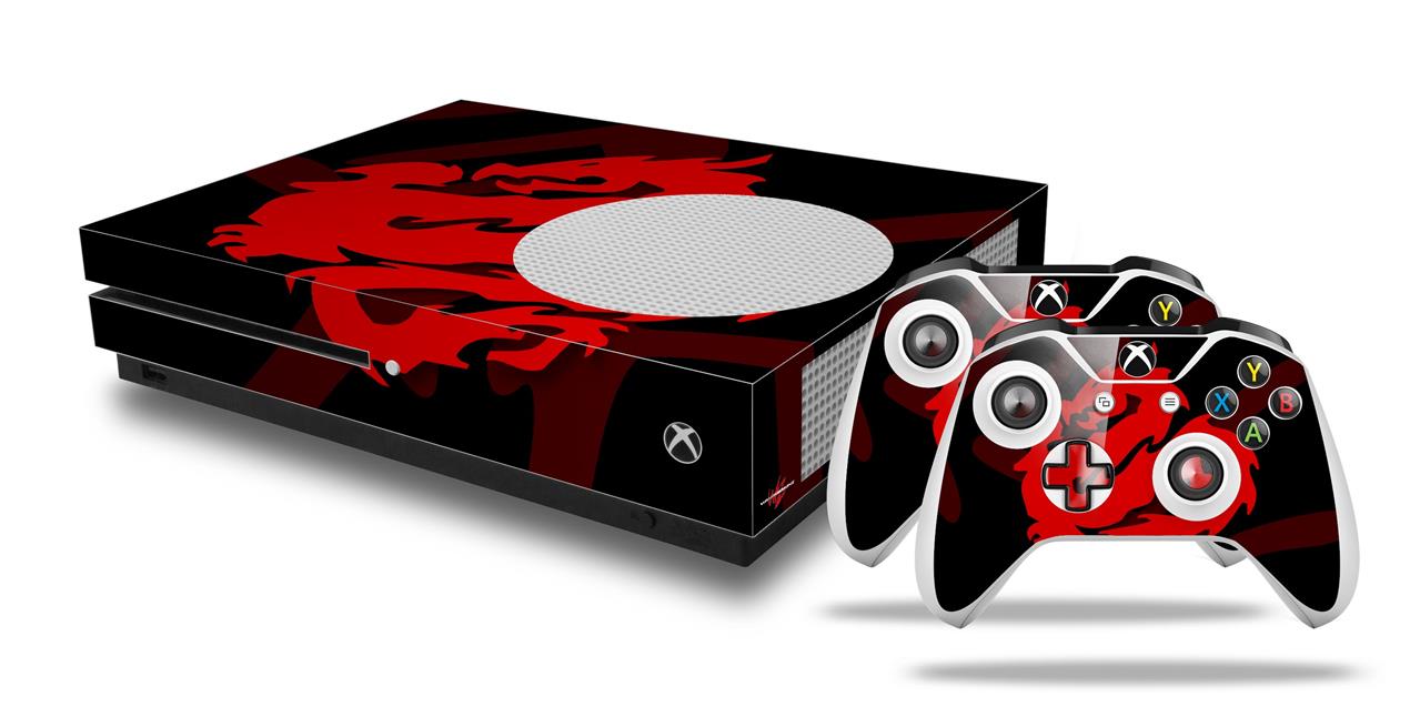WraptorSkinz Decal Skin Wrap Set works with 2016 and newer XBOX One S Console and 2 Controllers Oriental Dragon Red on Black