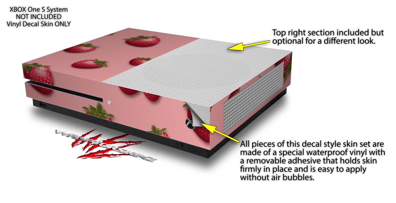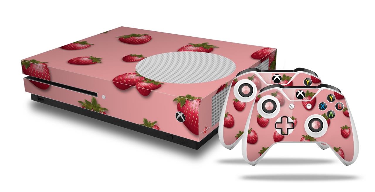 WraptorSkinz Decal Skin Wrap Set works with 2016 and newer XBOX One S Console and 2 Controllers Strawberries on Pink
