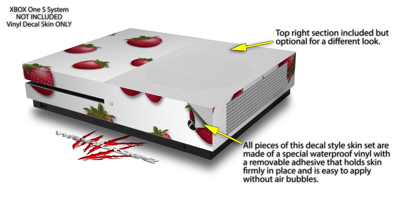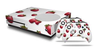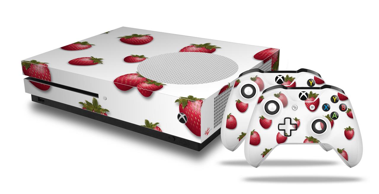 WraptorSkinz Decal Skin Wrap Set works with 2016 and newer XBOX One S Console and 2 Controllers Strawberries on White