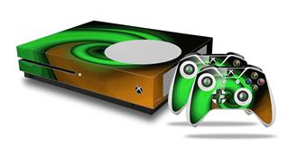 WraptorSkinz Decal Skin Wrap Set works with 2016 and newer XBOX One S Console and 2 Controllers Alecias Swirl 01 Green