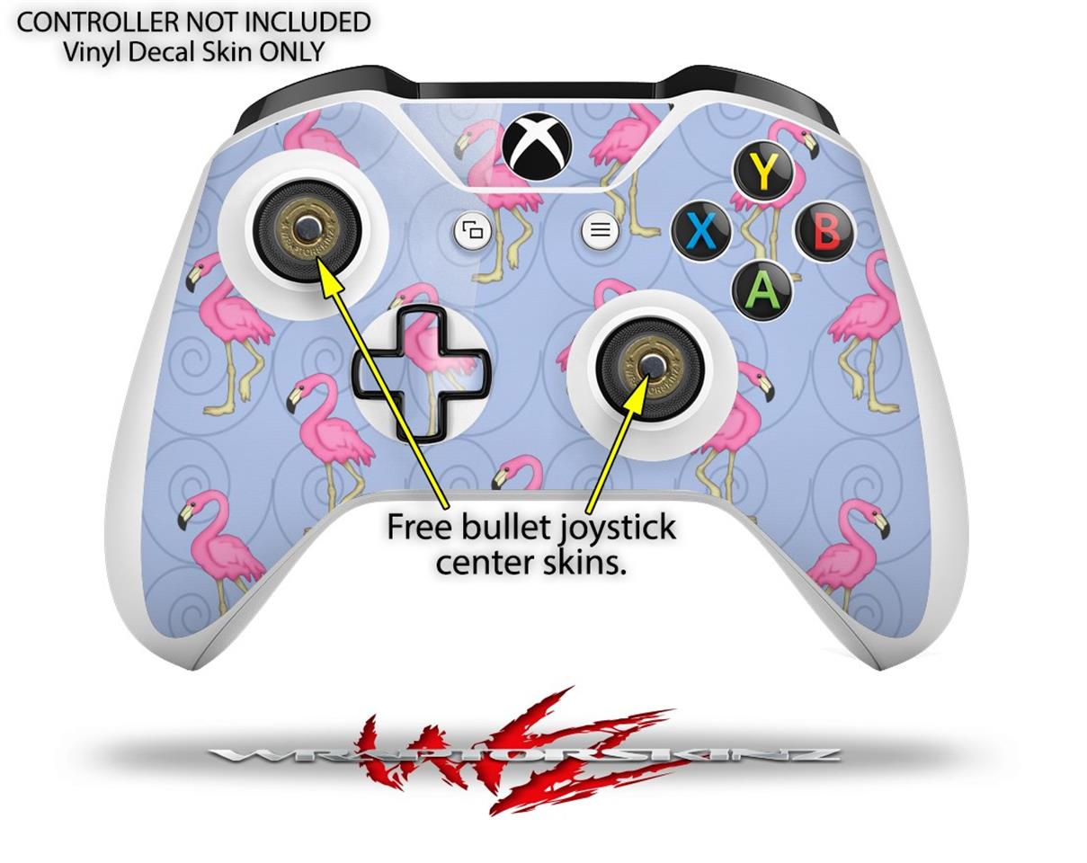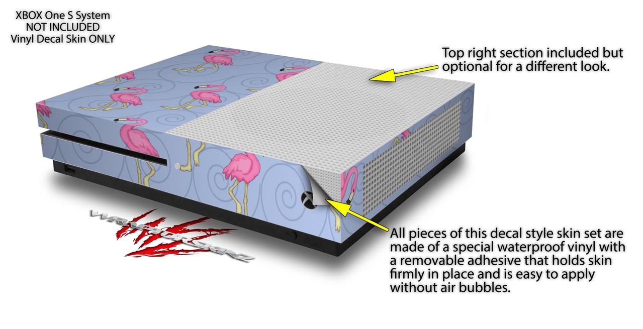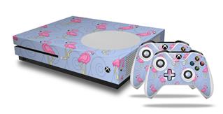 WraptorSkinz Decal Skin Wrap Set works with 2016 and newer XBOX One S Console and 2 Controllers Flamingos on Blue