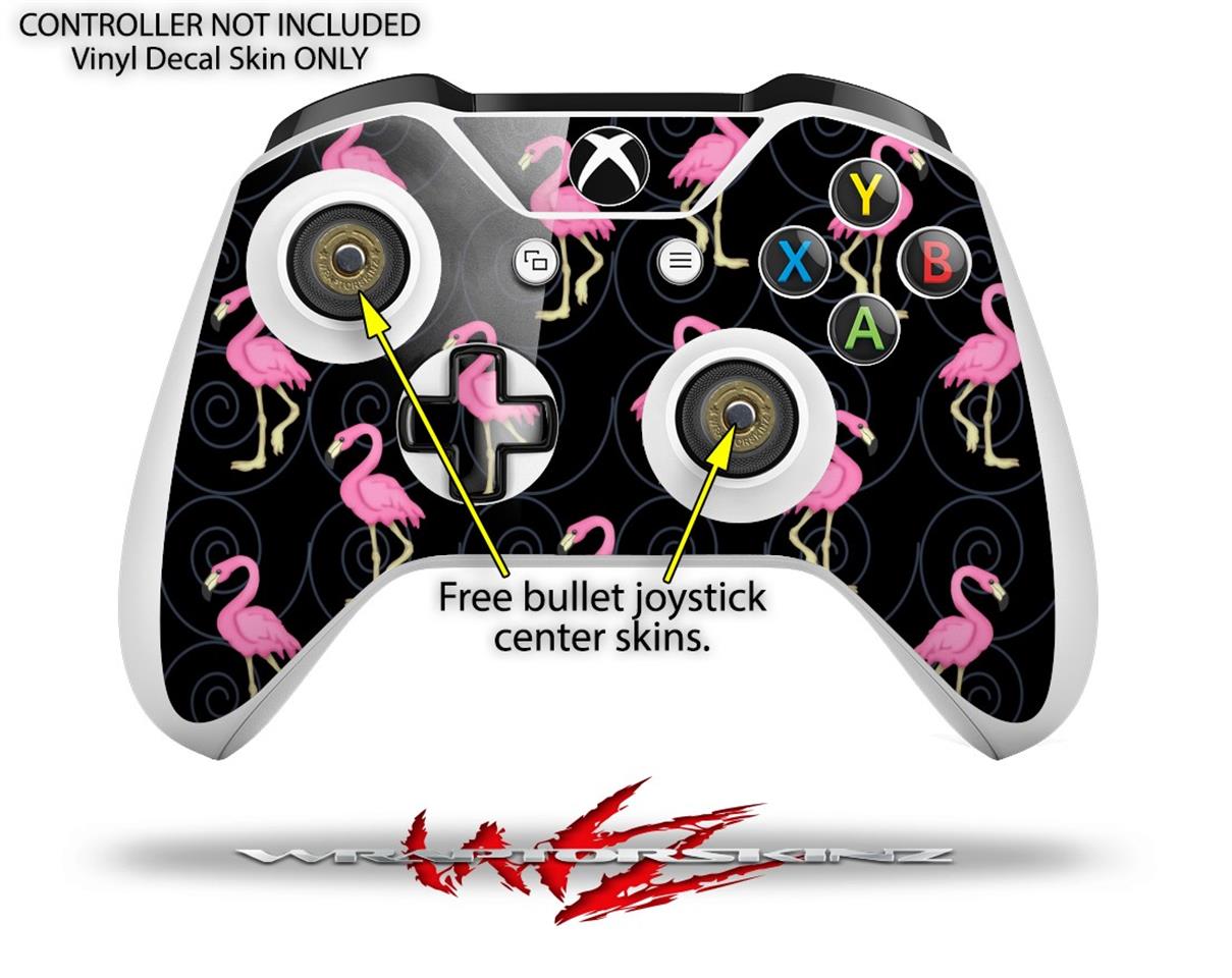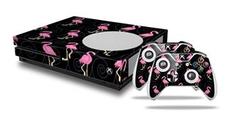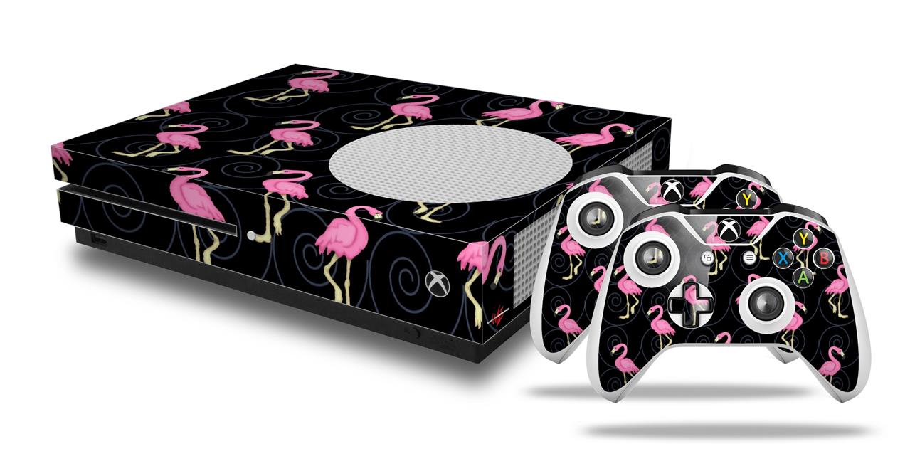 WraptorSkinz Decal Skin Wrap Set works with 2016 and newer XBOX One S Console and 2 Controllers Flamingos on Black