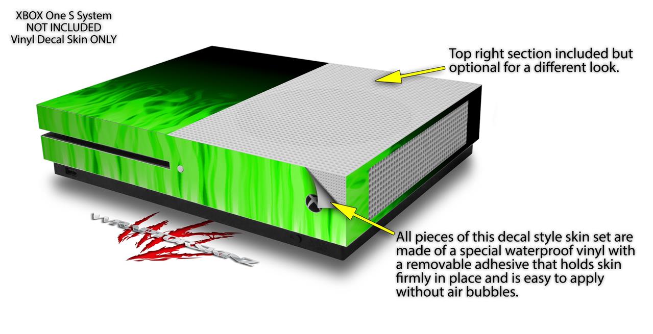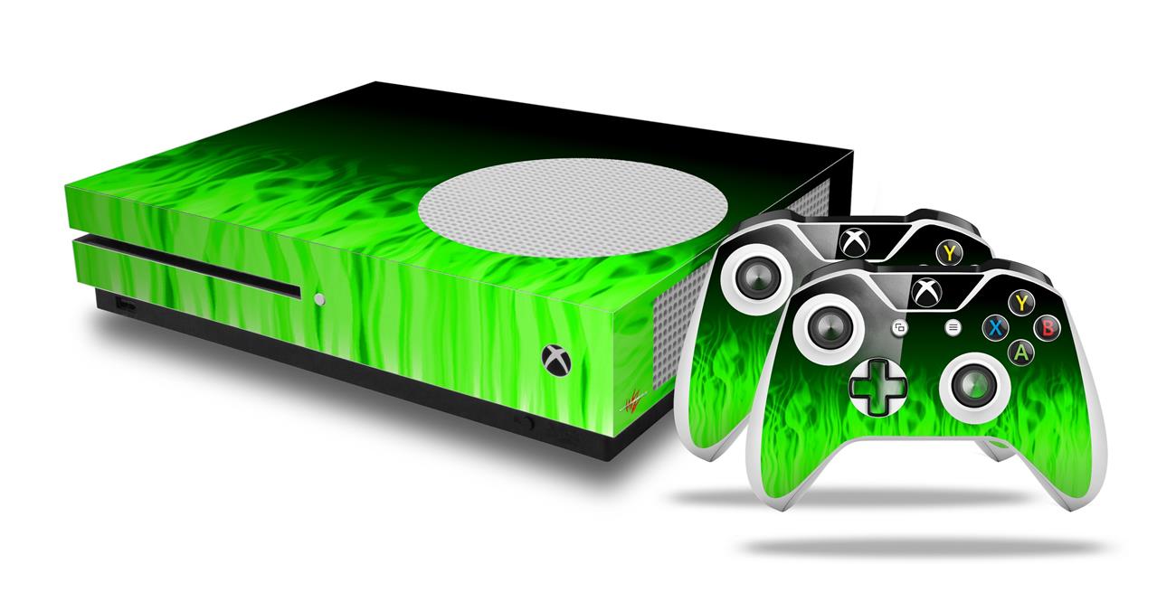 WraptorSkinz Decal Skin Wrap Set works with 2016 and newer XBOX One S Console and 2 Controllers Fire Green
